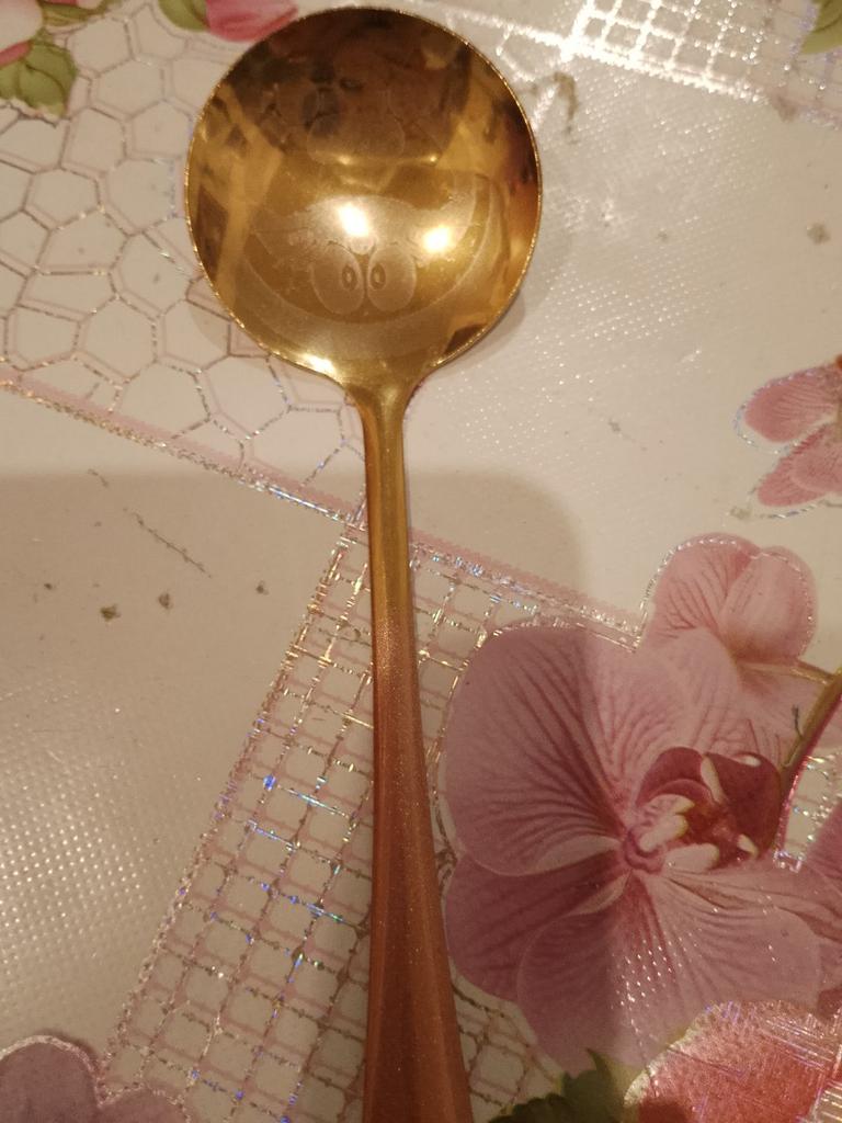 Klein. Das Design auf dem Löffel ist kaum sichtbar. Aber lustig und nett