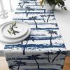 Nautischer Tischläufer in Blau und Weiß, Tischläufer mit Palmen-Akzent, Tischläufer mit tropischen Pflanzen, Leuchtturm-Tischläufer, Ankerläufer