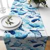 Seestern-Tischläufer, Fischmuster-Tischdecke, nautische Tischläufer, Mariner-Tischplatte, Aqua-Tischdecke, marineblaue rechteckige Tischdecken