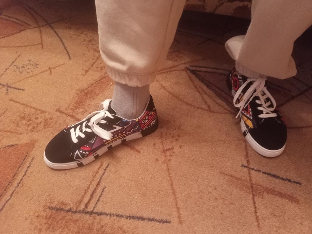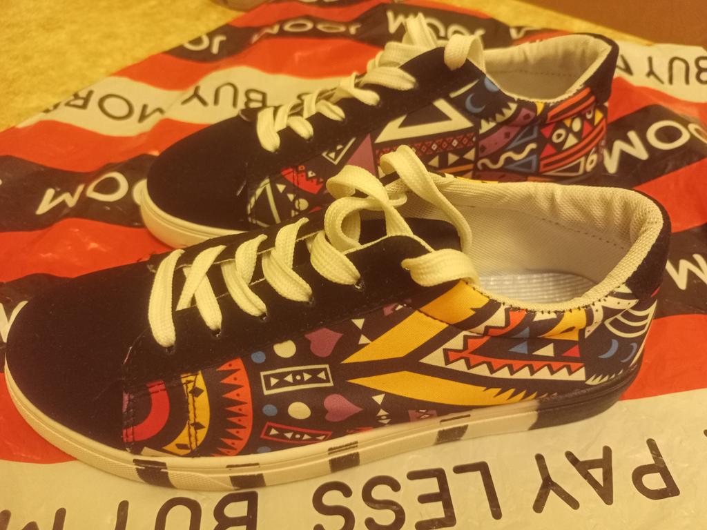 Ausgezeichnete Turnschuhe, harte Sohlen, heller Druck. Fällt der Größe entsprechend aus. Ich empfehle zu kaufen.