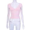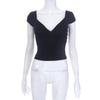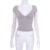 Sommer 2024 Solide Sexy Backless V-ausschnitt frauen T-shirt Low-cut Kurzarm Casual T-shirts Frau Schlank Elegante Gestellte tees 30617