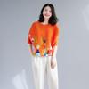 Lockeres Oberteil, Rundhalsausschnitt, orangefarbener Druck, stilvolles und altersminderndes Design, lässig und figurschmeichelnd, modisches T-Shirt für Damen