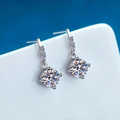 Gica Gema S925 Sterling Silber 2024 Neue klassische Fransen Sechs Krallen Ein Karat Zirkon Ohrringe