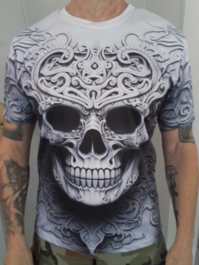 Das t-shirt hat nichts mit dem Foto zu tun. Ist einfach ein Druck. Keine 3D Wirkung. Hatte mehr erwartet. Links auf dem Bild hatte ich bestellt. Das rechts ist das was angekommen ist.