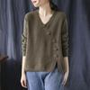 Herbst Winter Literarischen Vintage Tasten V-ausschnitt Pullover Damen Lose Beiläufige Stricken Pullover Top Frauen Alle-spiel Jumper Outwear