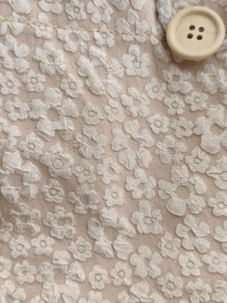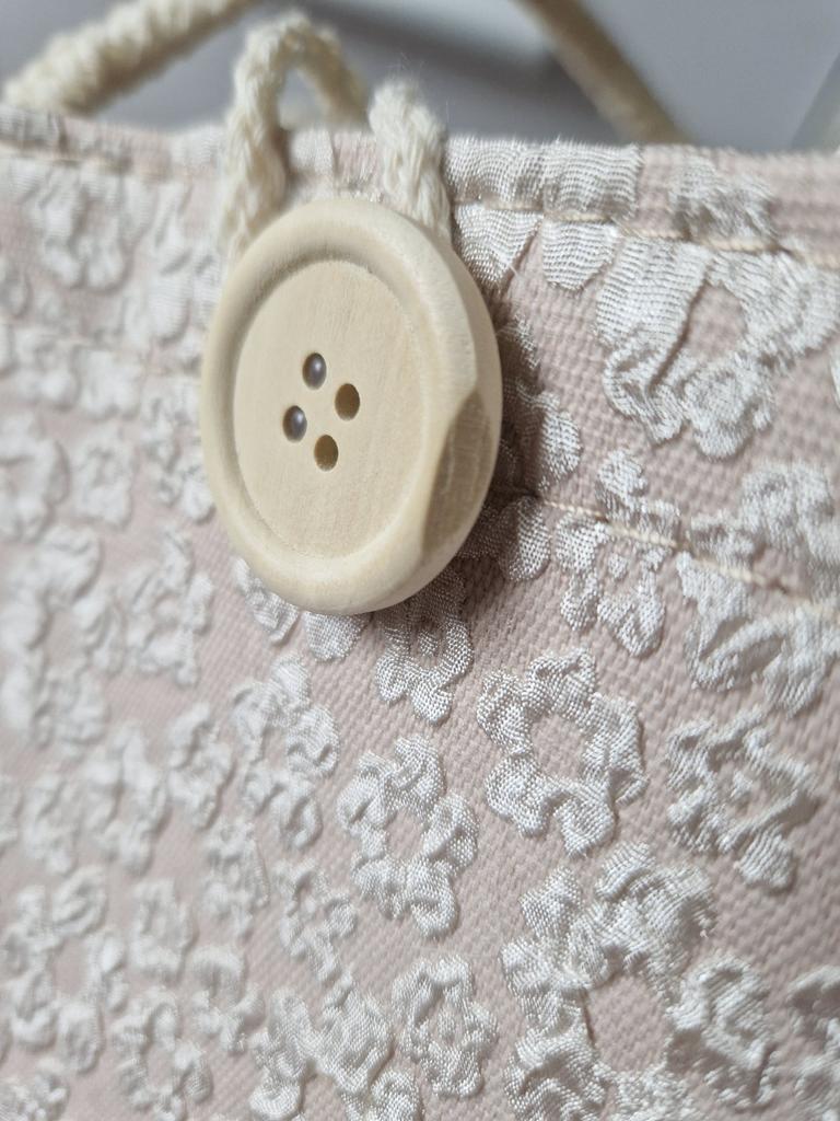 Der Knopf ist nachlässig mit Heißkleber aufgeklebt, ich dachte, er wäre angenäht. Das Material ist wie Leinen oder Sackleinen. Na ja. Umsonst ausgegeben. Hat mir nicht gefallen