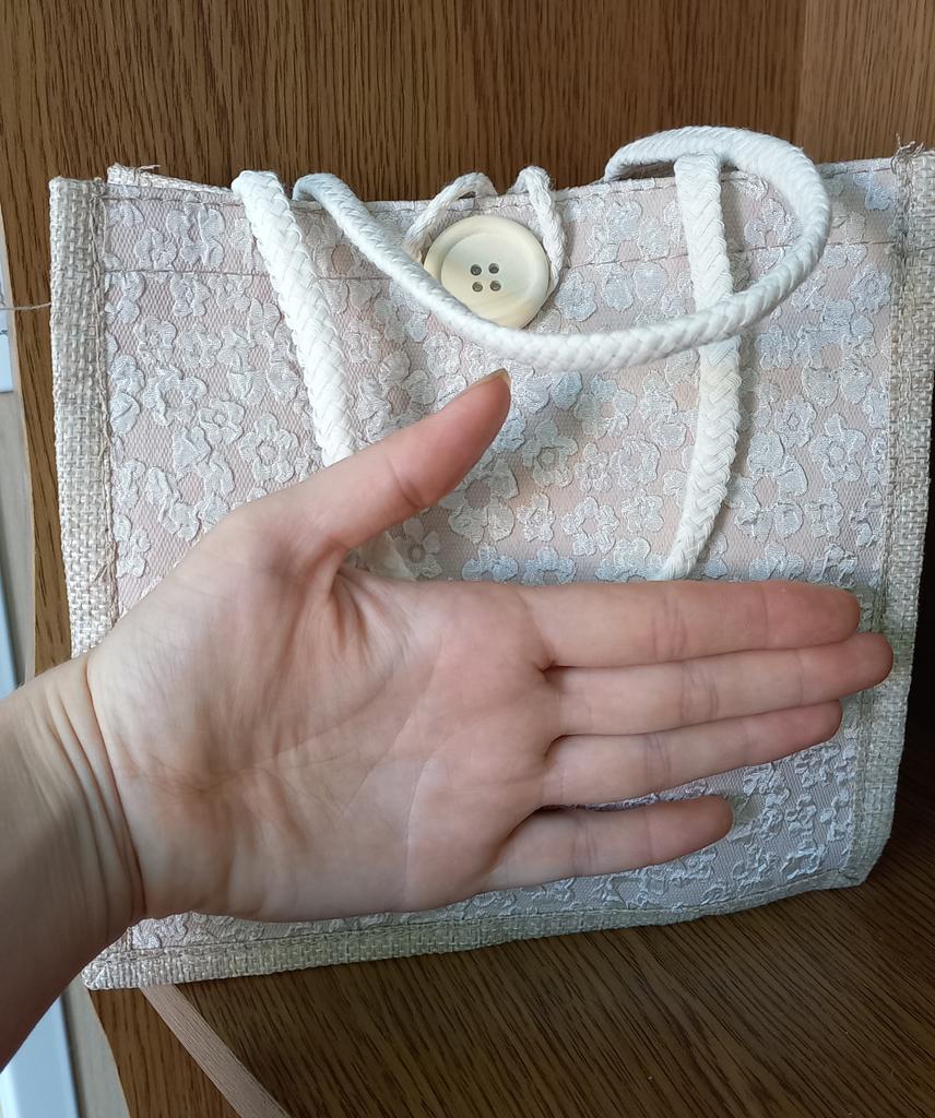 Die Handtasche ist interessant. Nahm Sandwiches für die Arbeit. Dennoch hoffte ich, dass es größer sein würde. Lassen Sie sich vom Foto nicht täuschen, achten Sie nicht darauf. Die Tasche ist klein. Erfüllt nicht die angegebenen Parameter. Tatsächliche Größe 19×20.