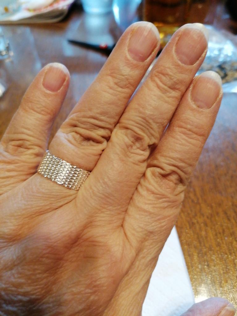 Ein sehr schöner Ring, allerdings habe ich Größe 10 genommen, er ist mir zu klein, obwohl er immer gepasst hat. Aber der Ring ist wunderschön.