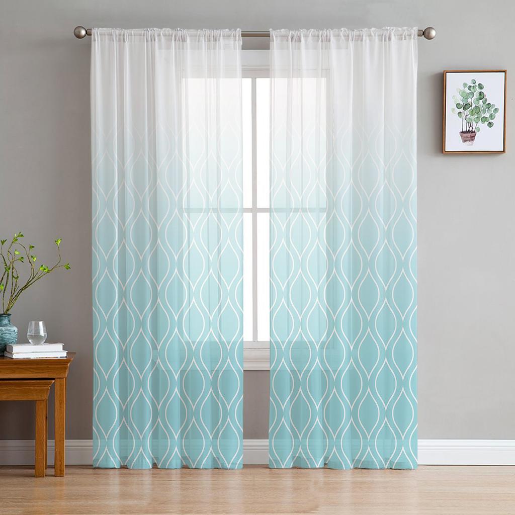 Blau Gradienten Fenster Vorhänge Sheer Chiffon Tüll Vorhang Hause Wohnzimmer Hintergrund Dekoration