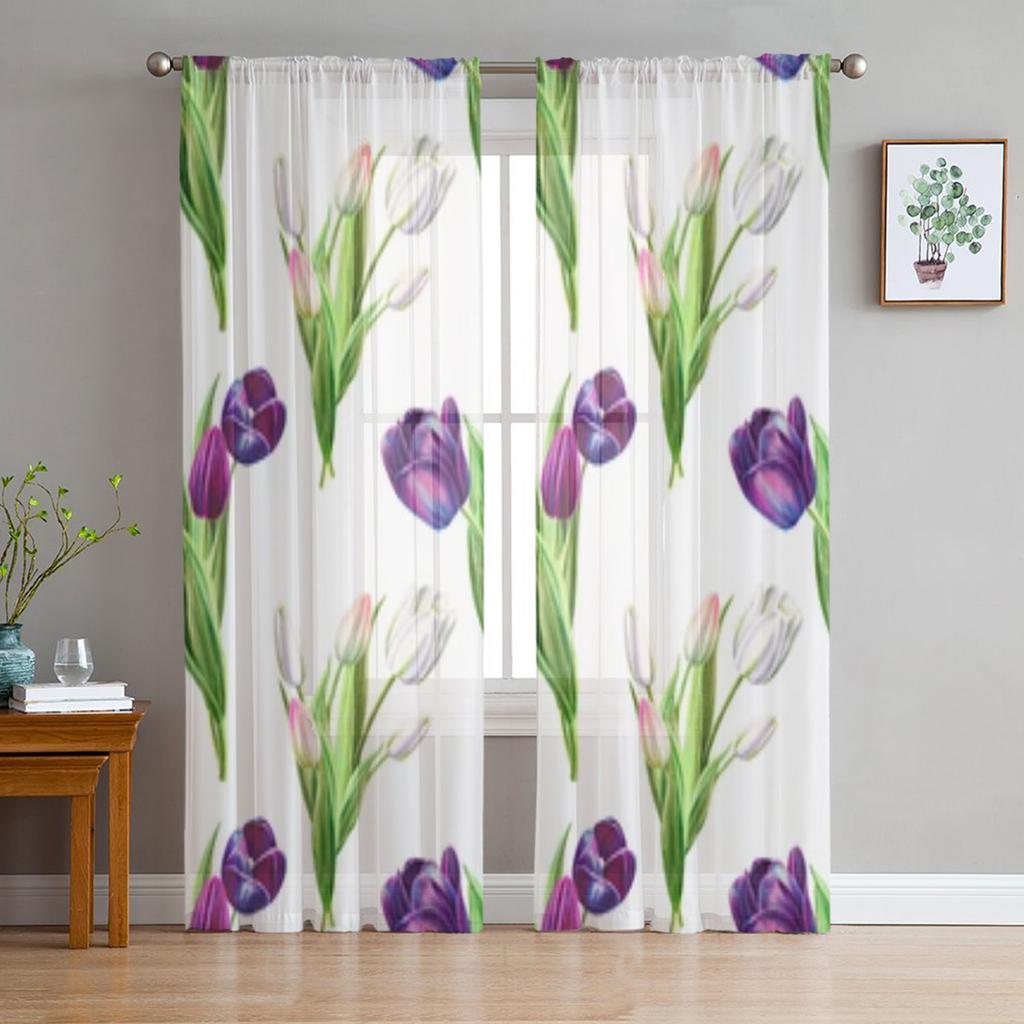 Tulpen Aquarell Malerei Sheer Fenster Vorhänge Für Wohnzimmer Schlafzimmer Moderne Voile Tüll Vorhänge Stoff Vorhänge Für Küche