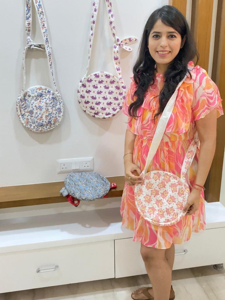 Runde Schultertasche - Blockdruck