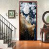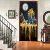 Landschaft Tür Dekoration Aufkleber Sonnenuntergang einfache abstrakte Linien Bambus Kühlschrank Tapete für Wohnzimmer Home Decor Schlafzimmer Kunst Aufkleber