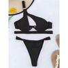 Schwarz One Shoulder V-Bar Bügel Bikini Set Push Up Badeanzug Weibliche Bademode Frauen Badende Badeanzug
