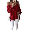 Ärmel Große Größe Frauen Bluse Schulterfrei Sexy Schlinge Geknotet Langes Loses Hemd