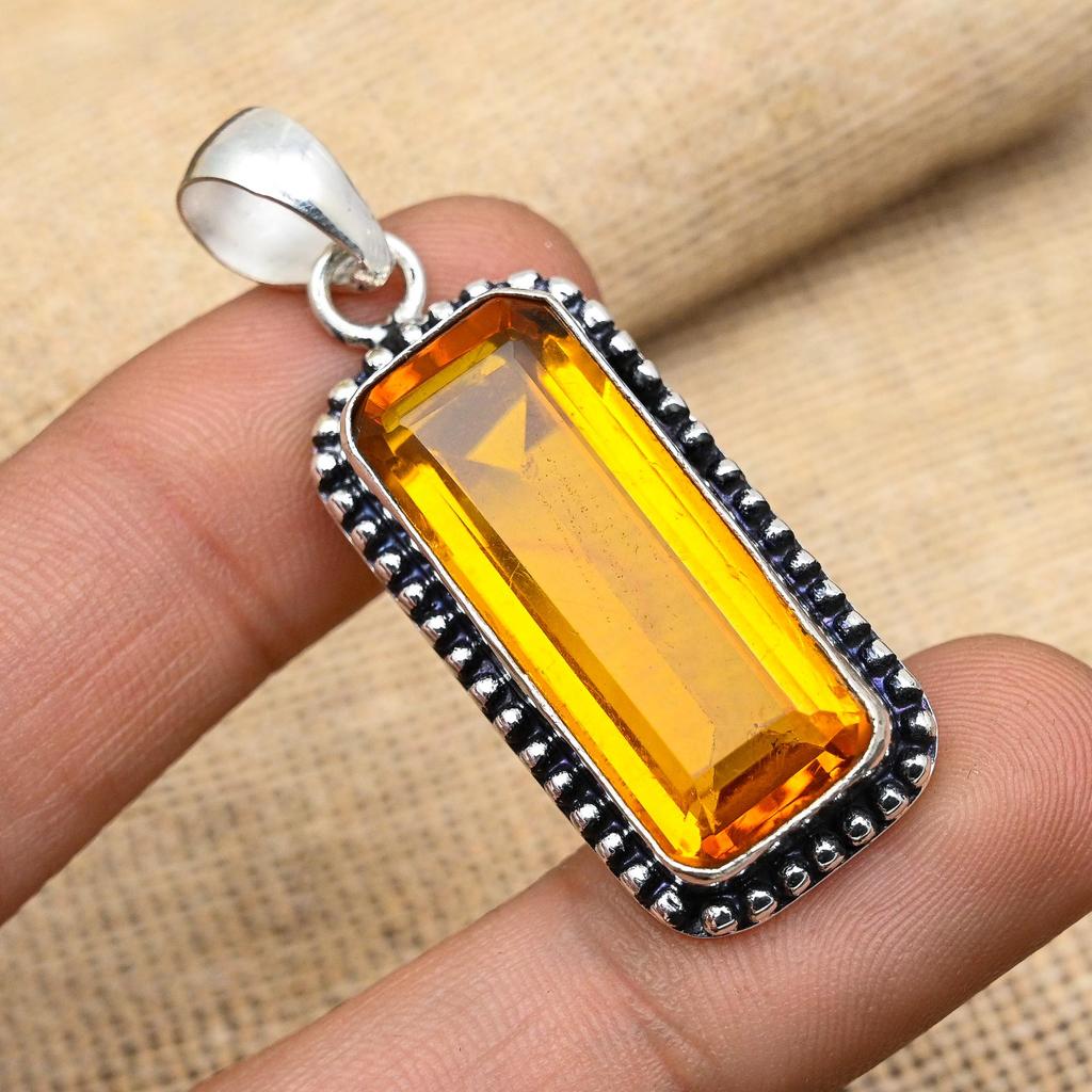 Honigtopas-Edelstein, handgefertigter Schmuckanhänger aus 925er Sterlingsilber für Frauen