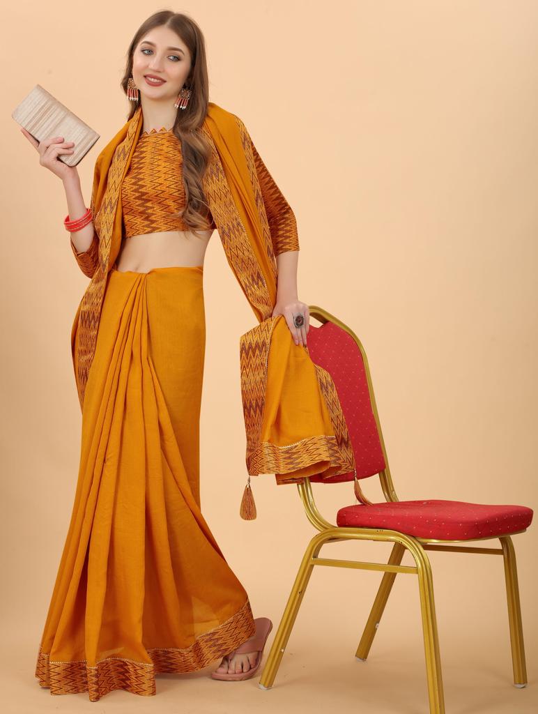 Saree aus Vichitra-Seide mit Jacquard-Arbeit für Mädchen und Frauen