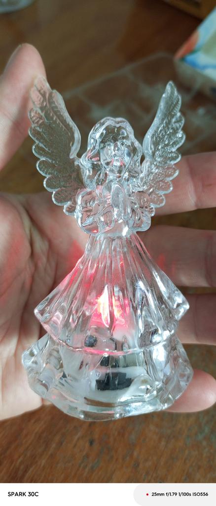 Wunderschöner transparenter Engel, LED-Lampe. Danke an den Verkäufer! Die Batterie ist bereits eingebaut und der kleine Engel schimmert sehr schön in verschiedenen Farben. Alles funktioniert. Danke Jum.