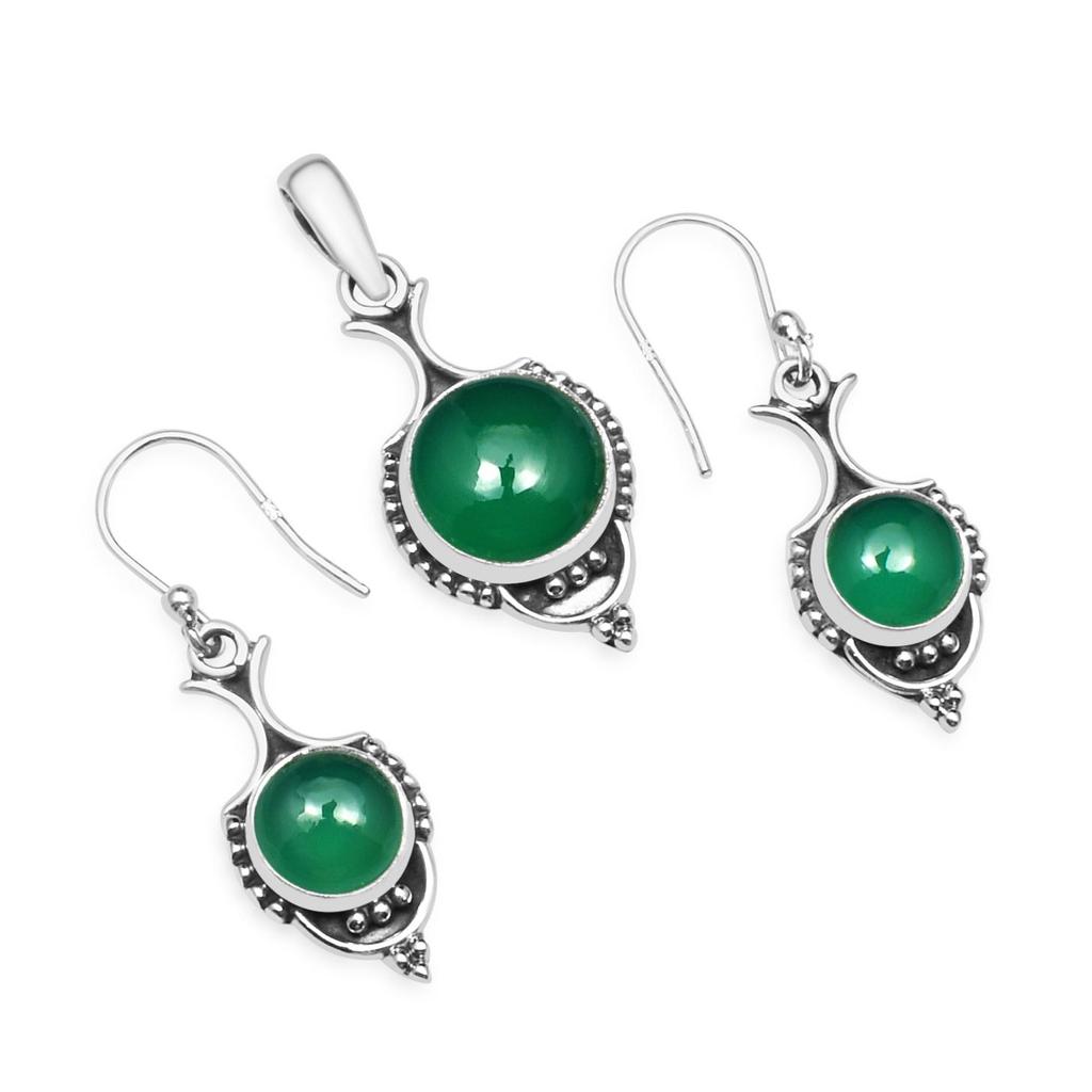 Natürliche grüne Onyx Edelstein Anhänger Ohrringe Schmucksets, 925 Sterling Silber, Ohrhänger, handgefertigtes Schmuckset, Geschenk für Ostern
