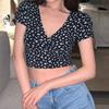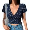 Produkteigenschaften: Vintage Floral Print Crop Top für Frauen, Cottagecore V-Ausschnitt Kurzarm Baby T-Shirt, Y2K Kleidung Koreanischer Sommer Slim Fit Tshirt, Floral Floral Short Crop Top