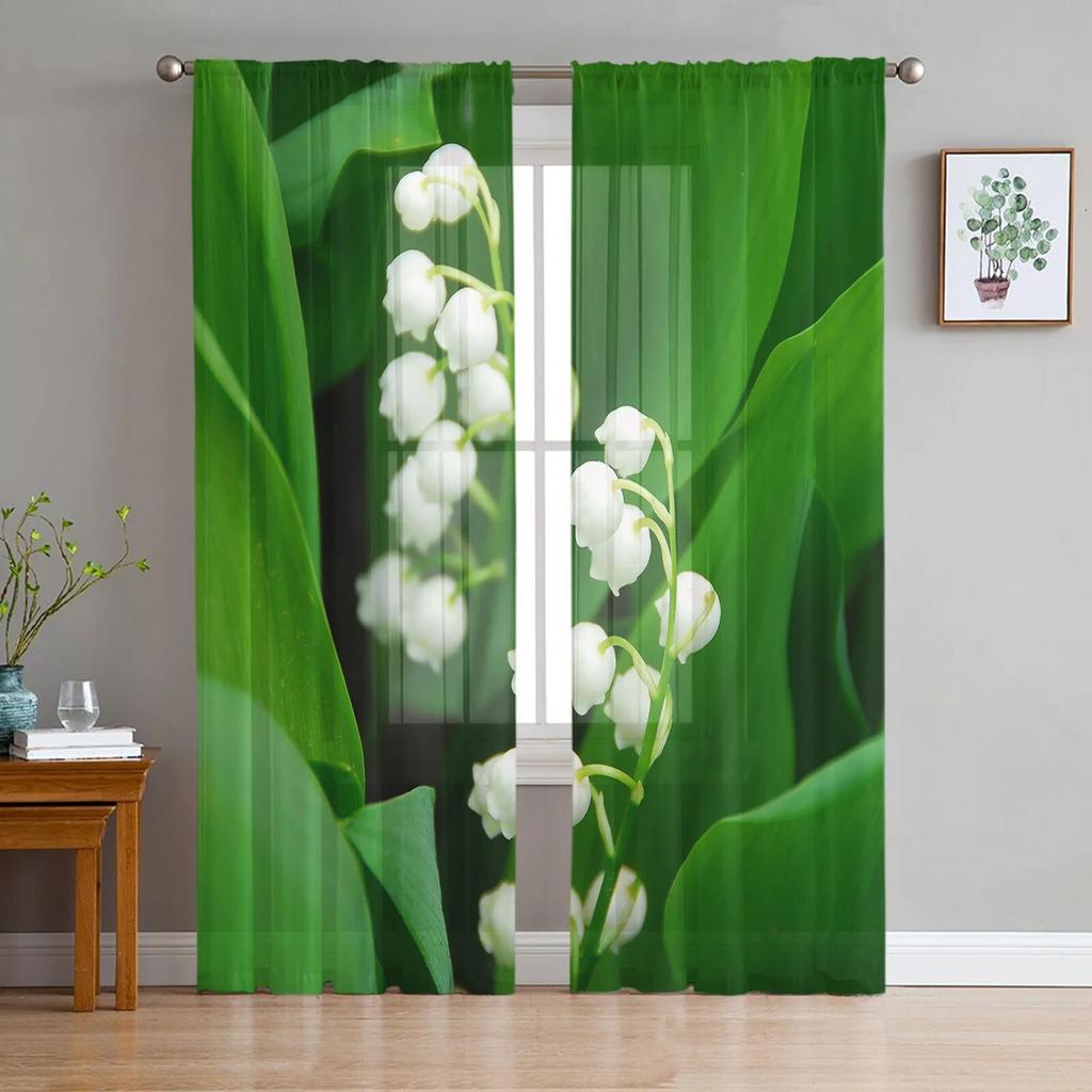 Moderne Tüllvorhänge mit Pflanzenblume für Wohnzimmer, Schlafzimmer, Zuhause, Küche, Fenster, transparente Vorhänge