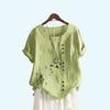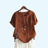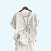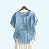Frauen Mode Kurzarm T-shirt Sommer & Herbst Casual Rundhals Floral Print Top Pullover Lose Baumwolle Leinen Blusen