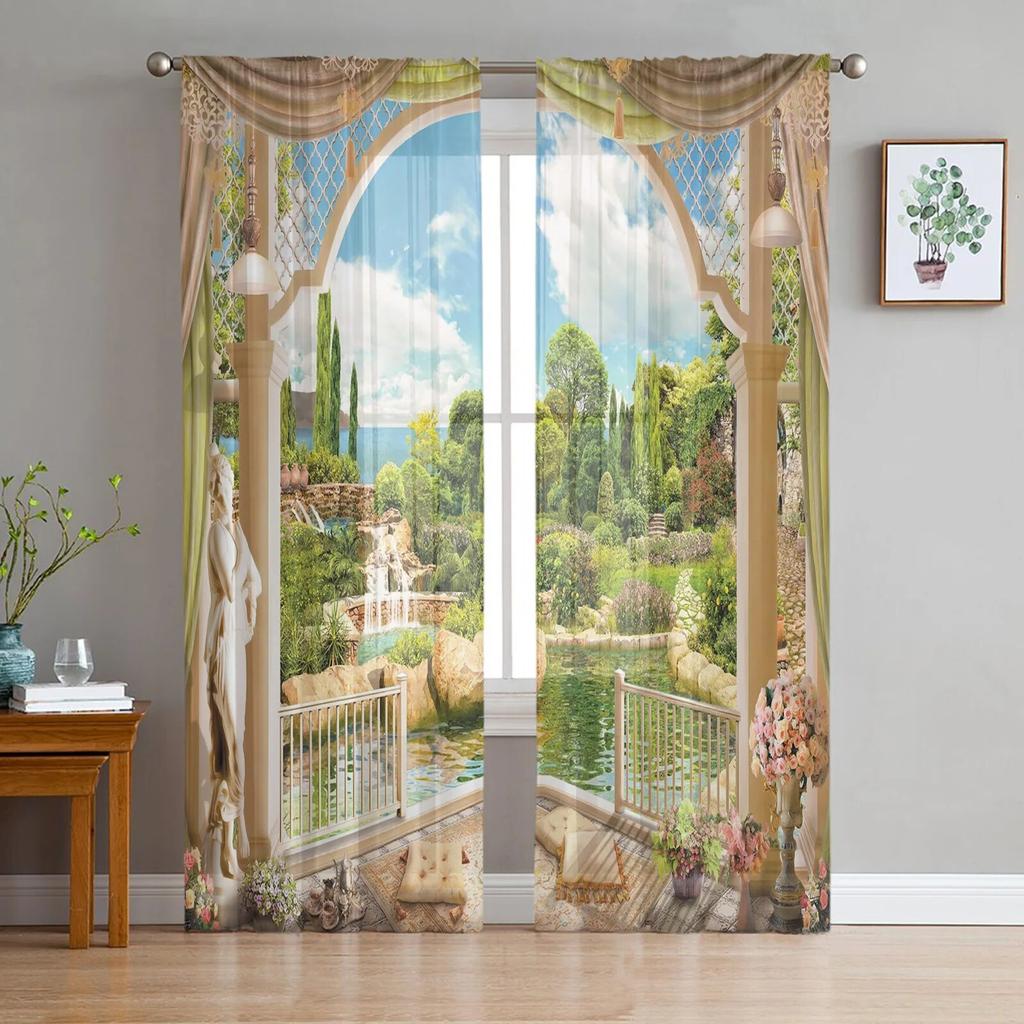 Garten Balkon Blumen Tüll Vorhänge für Wohnzimmer Sheer Vorhang Schlafzimmer Voile dekorative Fenster Behandlungen