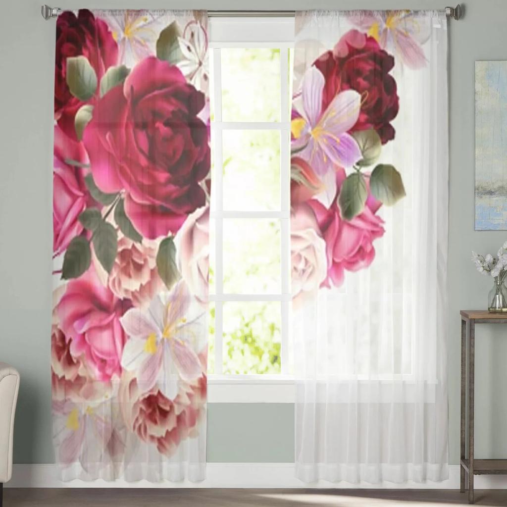 Schöne Rosen und Hyazinthen-Blumen, durchsichtige Vorhänge, Schlafzimmer-Voile-Vorhang, Wohnzimmer, Fenster, durchsichtige Vorhänge, Küche, Tüll-Vorhänge