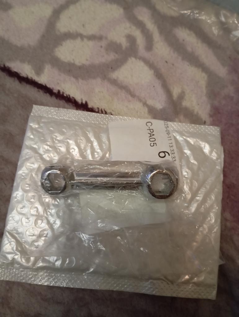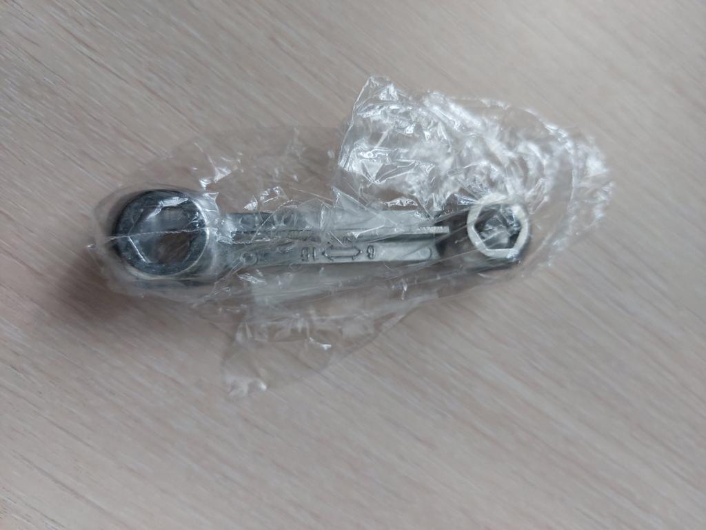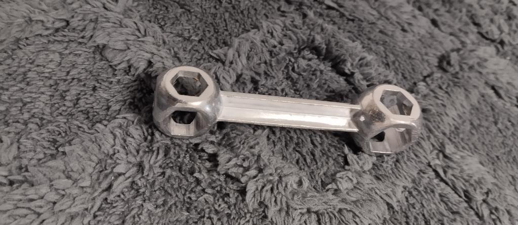 Ausgezeichneter Schlüssel. Für den Enkel geeignet. Zieht Muttern an seinem Fahrrad fest.