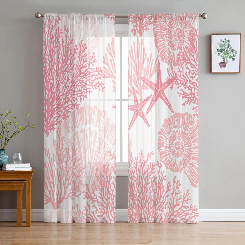Rosa Ozean Korallen Muschel Seestern Abstrakte Fenster Tüll Vorhänge für Wohnzimmer Küche Home Decor Sheer Voile Vorhänge