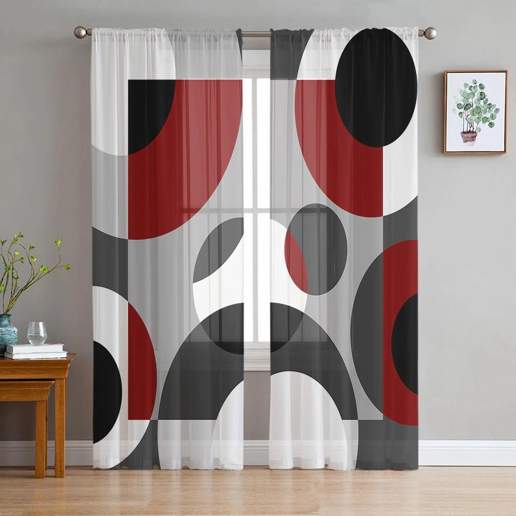 Geometrische Figuren Dunkelrot Grau Gardinen Für Wohnzimmer Schlafzimmer Wohnkultur Küche Tüll Für Windows Voile Vorhänge