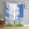 Weiße Wolken im blauen Himmel, durchsichtige Vorhänge, Schlafzimmer-Voile-Vorhang, Wohnzimmer, Fenster, durchsichtige Vorhänge, Küche, Tüllvorhänge