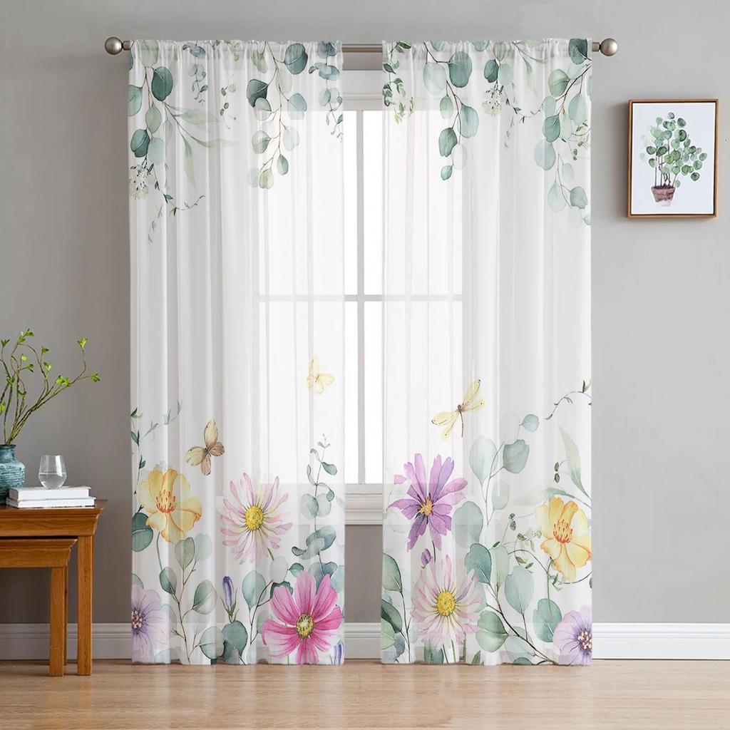 Idyllische Wildblumenblätter Tüllvorhänge für Wohnzimmer, transparenter Vorhang für Schlafzimmer, Weihnachtsjalousien, Voile-Vorhänge