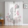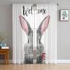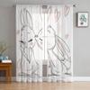 Hase Kaninchen mit Blumen Aquarell durchsichtiger Vorhang für Wohnzimmer moderne Voile Tüll Fenstervorhänge für Schlafzimmer Küche Vorhänge