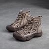 Johnature Damenschuhe aus echtem Leder, weiche Sohle, hohle Sommerstiefel, vielseitige, atmungsaktive Vintage-Sandalen