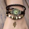 Retro-Blatt-Engelsflügel-Anhänger, Lederarmband, Uhren, Quarz-Armband-Armbanduhr