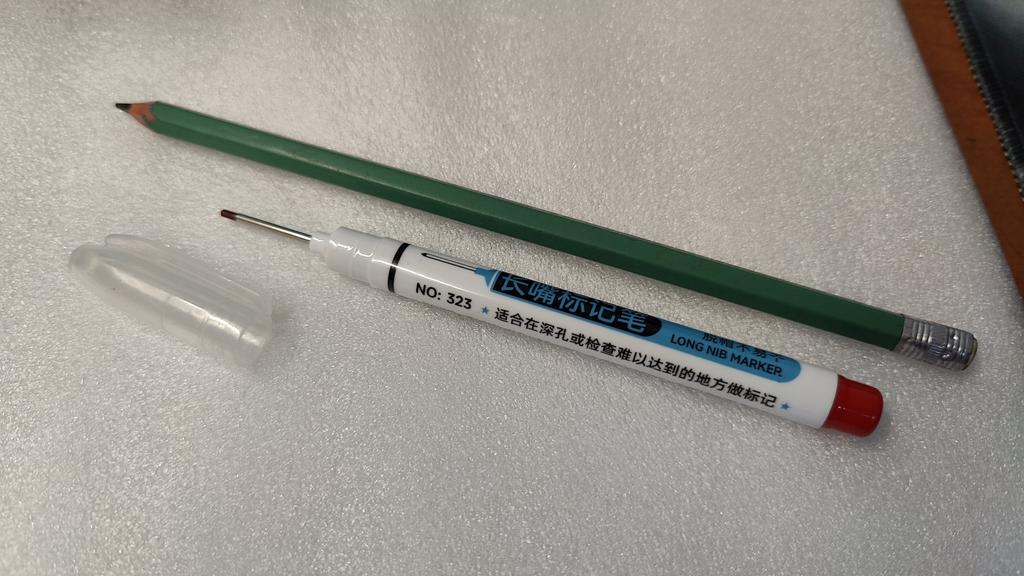 Ausgezeichneter Marker, besonders bei Zimmerarbeiten. Ein einfacher Stift passt nicht durch, aber dieser Marker passt selbst durch ein Nadelöhr (Scherz).