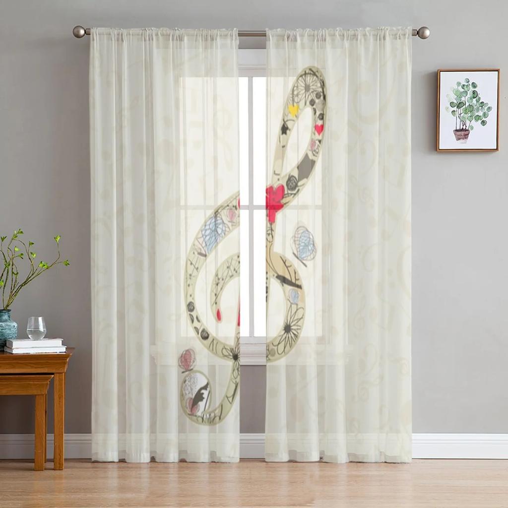 Durchsichtige Vorhänge mit Musiknoten für Wohnzimmer, transparenter Tüll, Fensterbehandlungen, Schlafzimmer, Küche, Heimdekoration, Schleiervorhänge