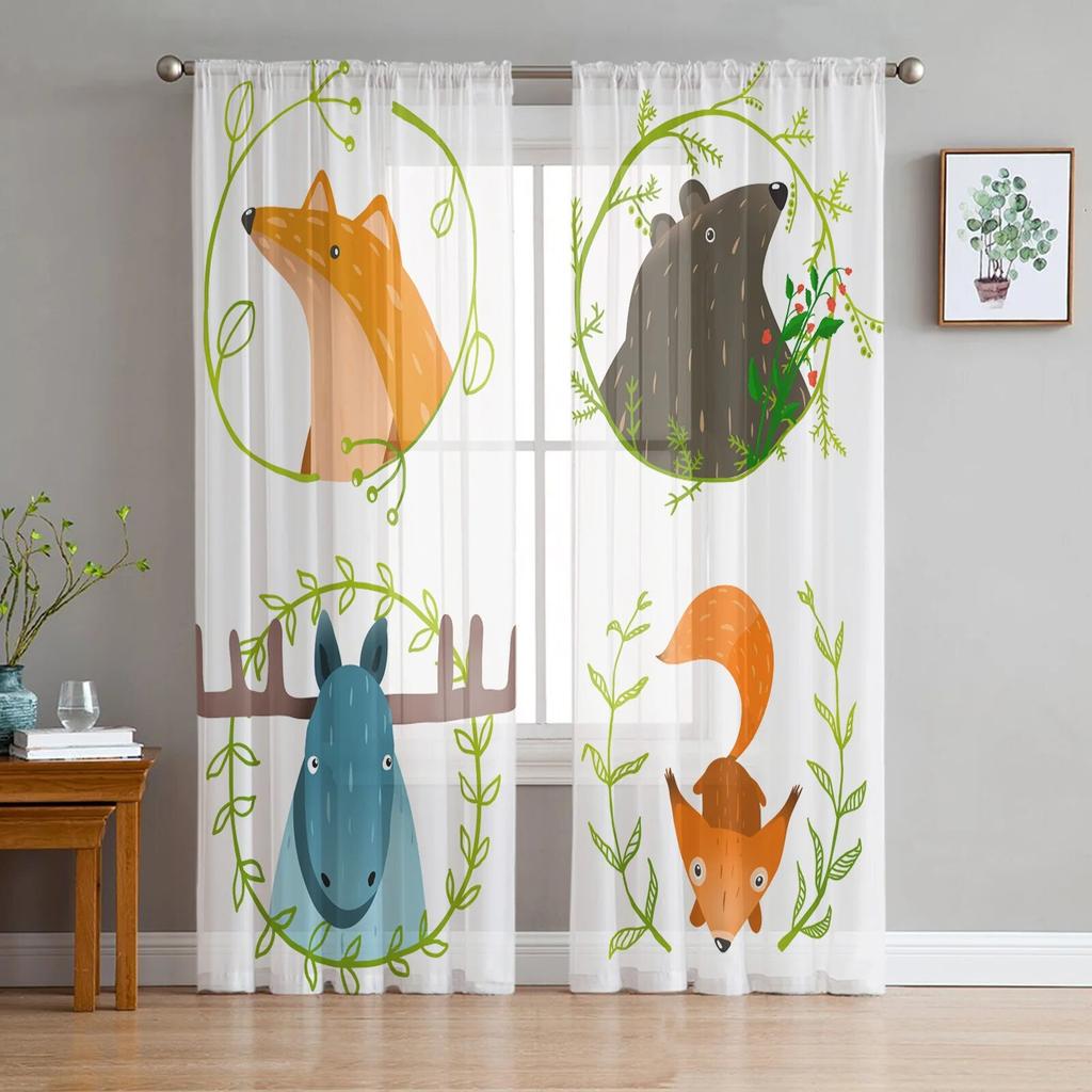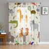 Transparente Vorhänge mit Aquarell-Wildtieren für Wohnzimmer, moderne modische Volantvorhänge für die Küche, Tüllvorhänge