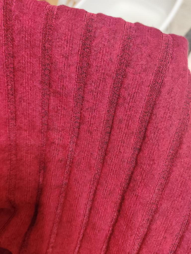 Die Bluse ist sehr angenehm, weich, der einzige kleine Fehler sind zwei kleine Ziehfäden am linken Ärmel, ich habe sie mit einer Häkelnadel eingezogen, praktisch unsichtbar, ich bin zufrieden.