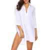 Modisches Damen-Oberteil mit einfarbigem V-Ausschnitt und Taschen und langen Ärmeln