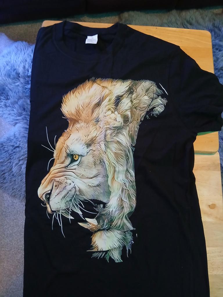 Ich habe dieses T-Shirt im Urlaub in Spanien gesehen, ich liebte das Shirt, aber sie hatten nie meine Größe. Ich war so glücklich, als man mir Ihre Website zeigte und da war es! Ich habe es sofort bestellt, zusammen mit einem günstigeren Löwen-T-Shirt. Beide sind heute angekommen. Das Polyester-T war wirklich schön, das T-Shirt, das ich wirklich haben wollte, war eine große, große Enttäuschung! Erstens ist der Aufdruck auf der Vorderseite schlecht positioniert, der Löwenkopf sollte seitlich sein, mit Teilen des Aufdrucks auf dem Ärmel. Es leuchtet nicht im Dunkeln und der Druck ist sehr plastisch. Auf der Rückseite befindet sich kein Aufdruck, wie das Original ihn hat. Auf dem Etikett war das „Glow in the Dark“-Logo. Insgesamt ein sehr enttäuschendes Hemd, ich werde das günstigere der beiden tragen.