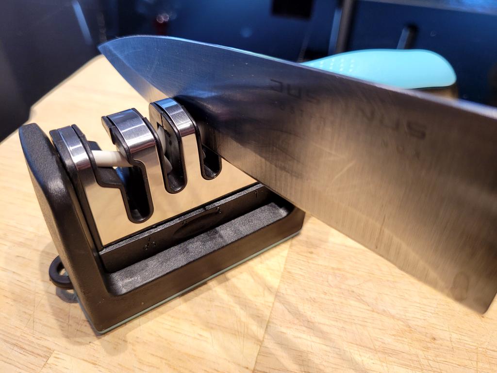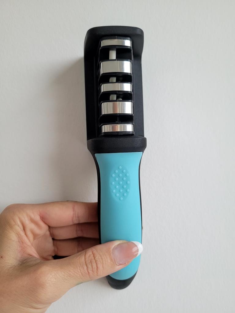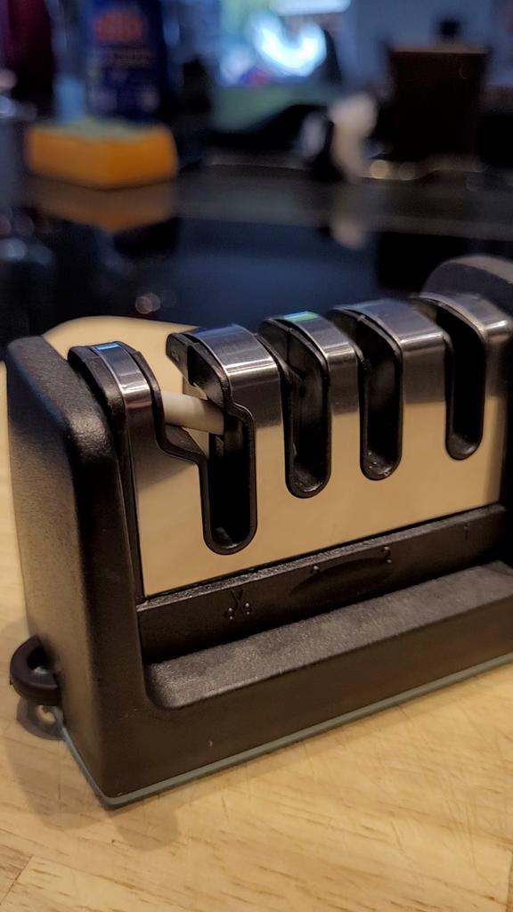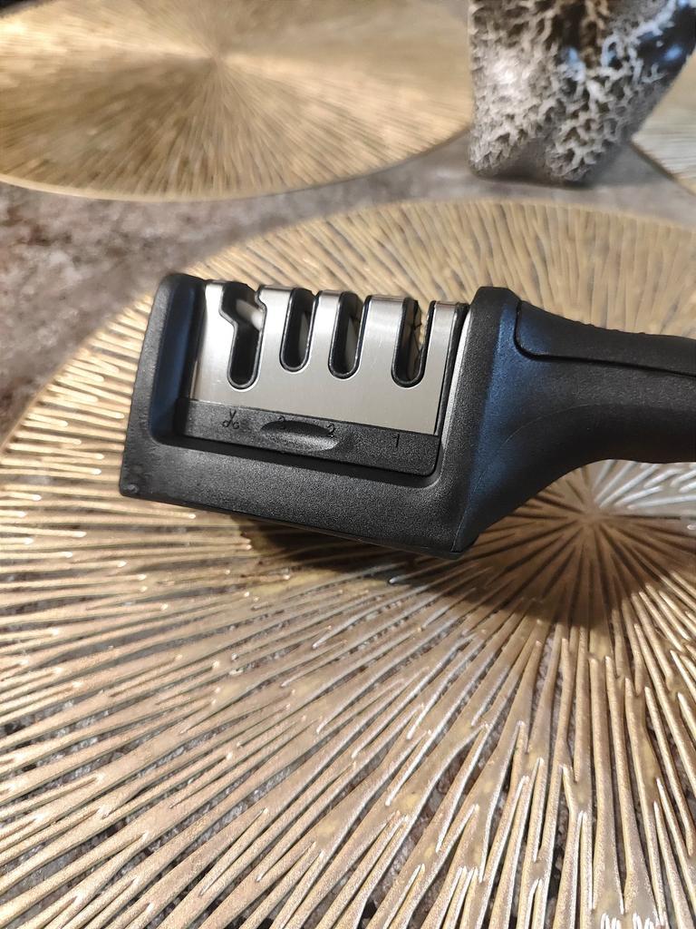 * Messerschärfer Block * 💥𝗟𝗶𝗲𝗳𝗲𝗿𝘇𝗲𝗶𝘁 Knapp 4 Wochen 💥𝗟𝗶𝗲𝗳𝗲𝗿𝘂𝗺𝗳𝗮𝗻𝗴 Im Lieferumfang enthalten ist 1 Messerschärfer in entsprechender Farbe und Ausführung. Verfügbar ist das in 2 verschiedenen Farben in 11 verschiedenen Ausführungen. Ich habe Nummer 9 in türkis bestellt... auch mit scherenschliff. Geliefert wurde das Ganze in einer Luftpolsterfolie. 💥𝗤𝘂𝗮𝗹𝗶𝘁ä𝘁 Dieser Messerschärfer Block hat mich positiv überrascht... er ist einfach in der Hand Anwendung und intuitiv. Er hat vier verschiedene Öffnungen, einer davon für schieren. Einfach das Messer darin hin und her bewegen und zack sind die Messer wieder scharf! 👌Super easy 👌 super schnell 👌 super praktisch Besonders gut gefällt mir, dass unten drunter eine Gummierung ist, damit es bei der Benutzung nicht hin und her rutscht (weder auf Glas noch auf Holz). Was auch super ist: ein fester Griff, der die Anwendung erleichtert. Zur Materialzusammensetzung : Ich vermute Kunststoffgehäuse und innen eine Art keramikstein 💥𝗙𝗮𝘇𝗶𝘁 Super praktischer Messerschleifer- Block, der nicht nur Messer, sondern auch Scheren im Handumdrehen wieder schärft.... super easy in der Anwendung.