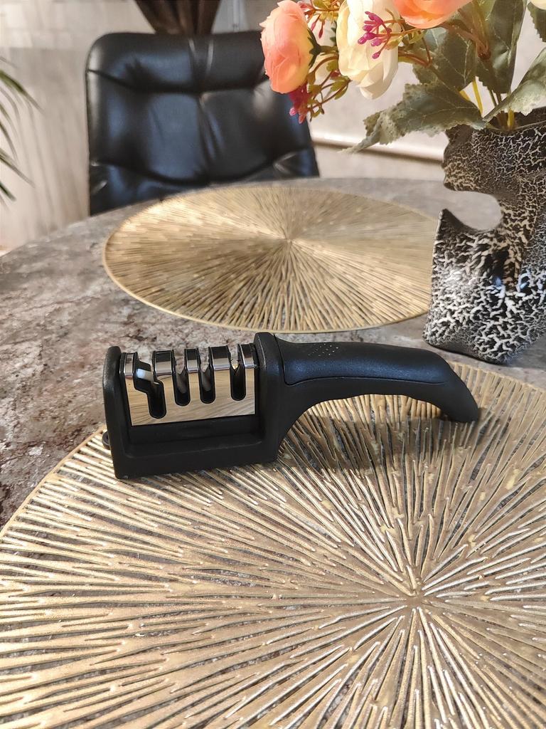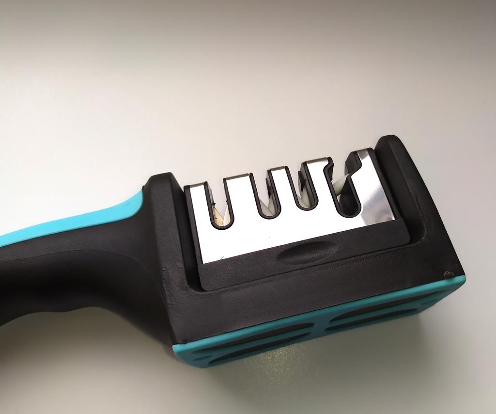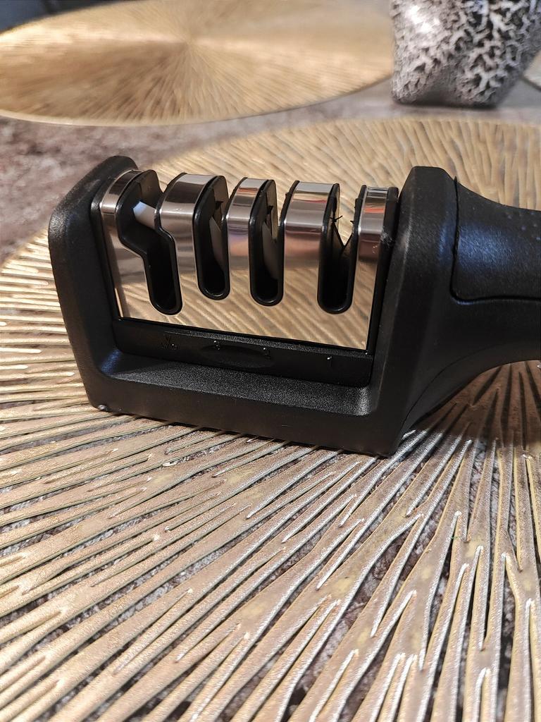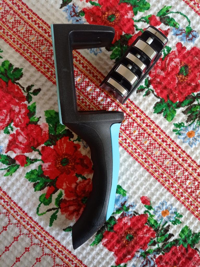 UNIVERSAL-HANDSCHÄRFER FÜR MESSER UND SCHERE👍 Hat vier Schlitze zum Schärfen. Der erste Schlitz ist für das grobe Schärfen von Messern gedacht, der zweite für mittleres und der dritte für feines Schärfen. Vierter Schlitz zum Schärfen der Schere. Es hat eine kompakte Größe und ein geringes Gewicht und besteht aus strapazierfähigem ABS-Kunststoff. Das Gehäuse verfügt über einen ergonomischen Griff mit bequemem Handgriff, einen abnehmbaren Schärfschlitz und gummierte Einsätze an der Unterseite, die ein Verrutschen des Geräts auf der Oberfläche verhindern.. Die Bedienung ist völlig einfach: Sie müssen lediglich die Klinge mit der Spitze nach unten in den Schlitz einsetzen und mehrmals in Ihre Richtung streichen. Toller Spitzer👌 Ich empfehle⭐