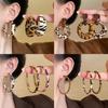 Leopardenmuster Ins Ohrringe Ohrringe Echter Duplexdruck Kreuzförmiges Leder Retro