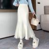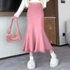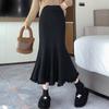 Schwarzer Halbrock mit hoher Taille für Herbst und Winter, neuer birnenförmiger gestrickter Fischschwanzrock für Frauen mit Quasten, schmaler Passform und hüftigem Wickelrock