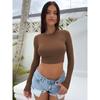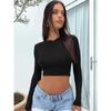 Eng anliegendes T-Shirt mit freiliegendem Nabel, das ein ultrakurzes, langärmliges Basisshirt trägt