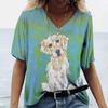 Schöne Harajuku Frauen T Shirt Grafik Niedlichen Cartoon V-ausschnitt Hund 3D Druck Große Yards Tops Kurzarm Sommer Damen Asiatische größe