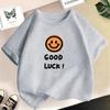 DESIGN — Mit kurzen Ärmeln, Rundhalsausschnitt aus Rippenstrick und lustigem Grafikdesign vorne。 Sie können das entsprechende Schnittmuster und die Kleidernummer nach verschiedenen Altersgruppen auswählen