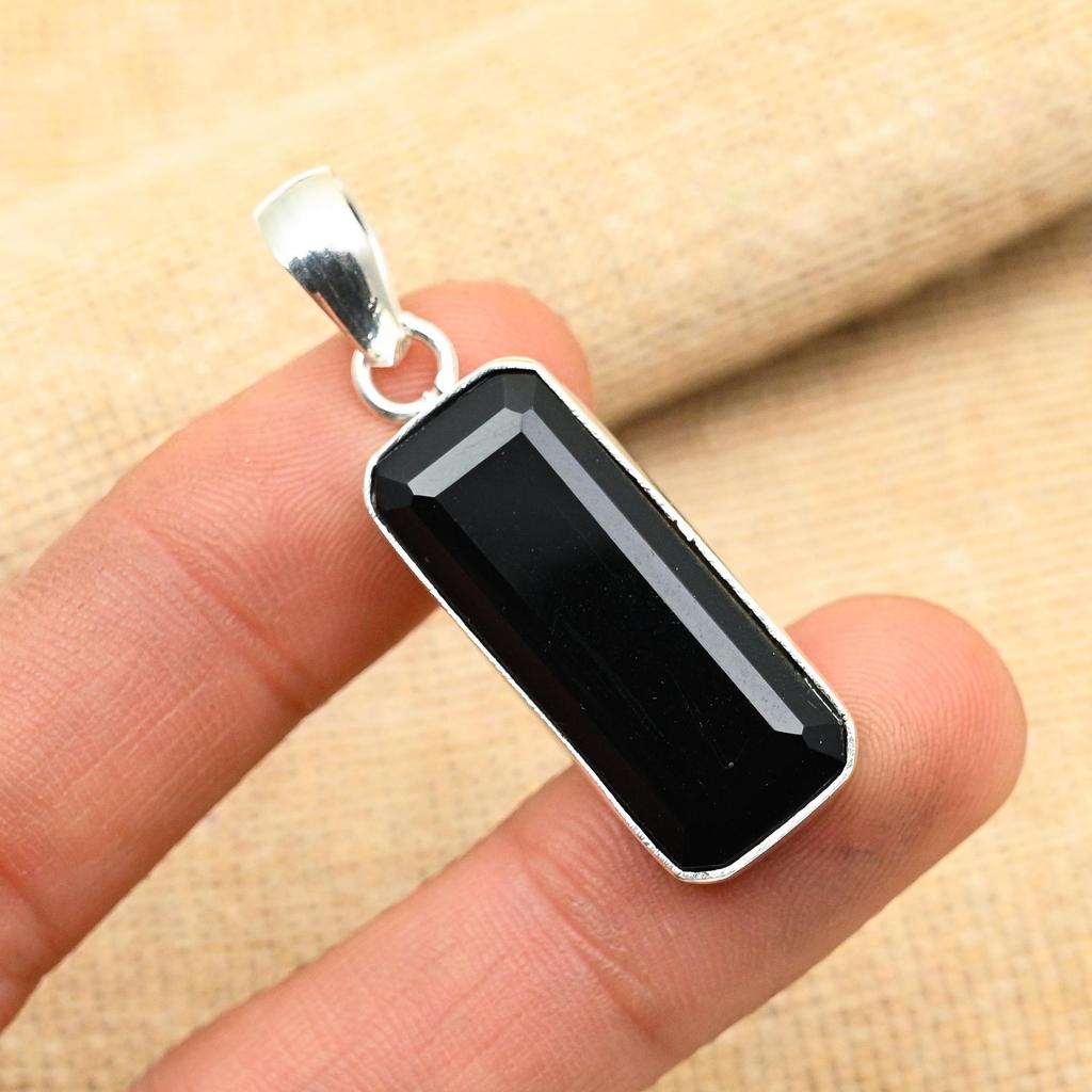 Schwarzer Spinell Edelstein 925 Sterling Silber Schmuck Handgemacht Wunderschöner Anhänger für Frauen
