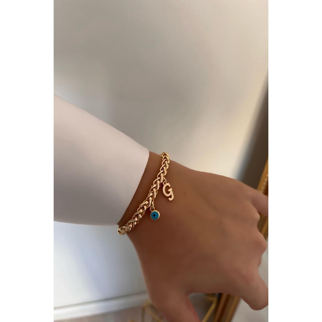 Personalisiertes dickes Kettenarmband mit Buchstabe G und bösem Blick